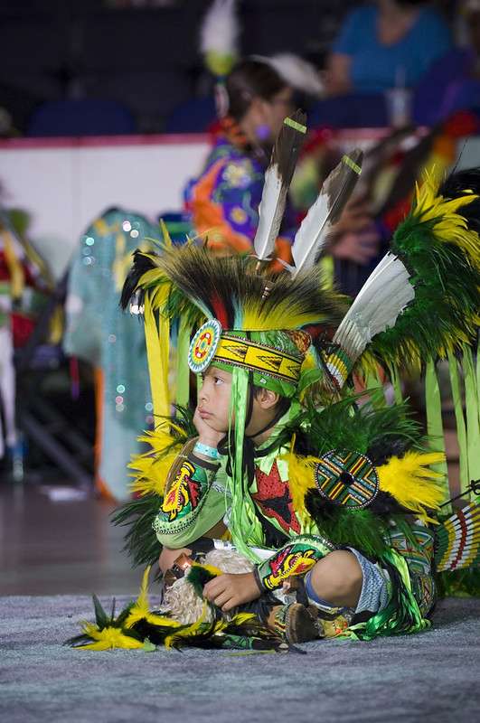 Los powwows son grandes reuniones sociales de nativos americanos que siguen bailes tradicionales iniciados hace siglos por sus antepasados y que evolucionan continuamente para incluir aspectos contemporáneos. A estos eventos de música de tambores, bailes, cantos, arte y comida asisten nativos y no nativos, quienes se unen al baile y aprovechan la oportunidad de ver a viejos amigos y enseñar las costumbres tradicionales a una generación más joven. Durante el Powwow Nacional , el público ve a bailarines con sus atuendos completos competir en varias categorías de baile, incluyendo la Edad de Oro de Hombres y Mujeres (de 50 años o más); Danza Elegante de Hombres, Hierba y Tradicional (del Norte y del Sur); Vestido Jingle de Mujeres, Chal Elegante y Tradicional (del Norte y del Sur); Adolescentes (de 13 a 17 años); Jóvenes (de 6 a 12 años) y Pequeños (de 5 años o menos). Los grupos de tambores son el corazón de todos los powwows y proporcionan los ritmos pulsantes y atronadores que acompañan cada movimiento de un bailarín. El powwow está dirigido por tres tambores anfitriones que presentan tres estilos de canto distintos (norteño, sureño y contemporáneo) y representan los mejores ejemplos de cada uno. El concurso de tambores destaca a grupos de 10 a 12 miembros cada uno, quienes cantan canciones familiares tradicionales que se transmiten oralmente de generación en generación. El Museo Nacional del Indígena Americano patrocinó el Powwow Nacional en 2002, 2005 y 2007 para presentar al público la diversidad y las tradiciones sociales de las culturas indígenas contemporáneas.