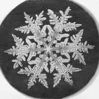 Wilson A. Bentley se fascinó con la nieve durante su infancia en una granja de Vermont, y experimentó durante años con formas de observar copos de nieve individuales para estudiar su estructura cristalina. Finalmente, conectó una cámara a su microscopio y, en 1885, fotografió con éxito los copos. Esta fotomicrografía y más de cinco mil más respaldaron la creencia de que no hay dos copos de nieve iguales, lo que llevó a los científicos a estudiar su trabajo y publicarlo en numerosos artículos y revistas científicas. En 1903, Bentley envió impresiones de sus copos de nieve al Smithsonian, con la esperanza de que pudieran ser de interés para el secretario Samuel P. Langley.