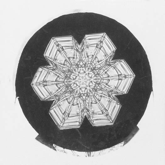 Wilson A. Bentley se fascinó con la nieve durante su infancia en una granja de Vermont, y experimentó durante años con formas de observar copos de nieve individuales para estudiar su estructura cristalina. Finalmente, conectó una cámara a su microscopio y, en 1885, fotografió con éxito los copos. Esta fotomicrografía y más de cinco mil más respaldaron la creencia de que no hay dos copos de nieve iguales, lo que llevó a los científicos a estudiar su trabajo y publicarlo en numerosos artículos y revistas científicas. En 1903, Bentley envió impresiones de sus copos de nieve al Smithsonian, con la esperanza de que pudieran ser de interés para el secretario Samuel P. Langley.