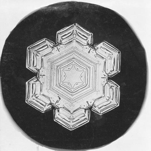 Wilson A. Bentley se fascinó con la nieve durante su infancia en una granja de Vermont, y experimentó durante años con formas de observar copos de nieve individuales para estudiar su estructura cristalina. Finalmente, conectó una cámara a su microscopio y, en 1885, fotografió con éxito los copos. Esta fotomicrografía y más de cinco mil más respaldaron la creencia de que no hay dos copos de nieve iguales, lo que llevó a los científicos a estudiar su trabajo y publicarlo en numerosos artículos y revistas científicas. En 1903, Bentley envió impresiones de sus copos de nieve al Smithsonian, con la esperanza de que pudieran ser de interés para el secretario Samuel P. Langley.