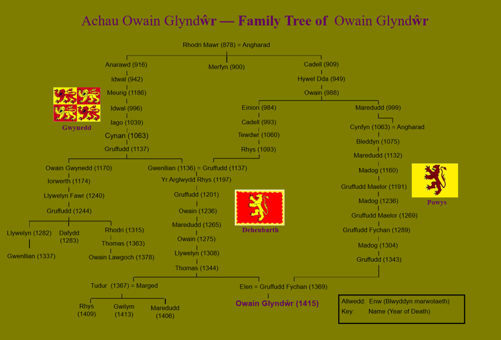 Owain Glyndŵr era descendiente de los tres Principados Reales de Gales.